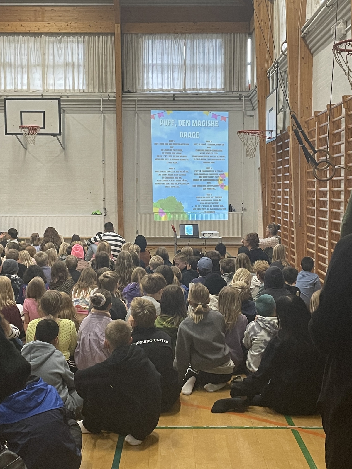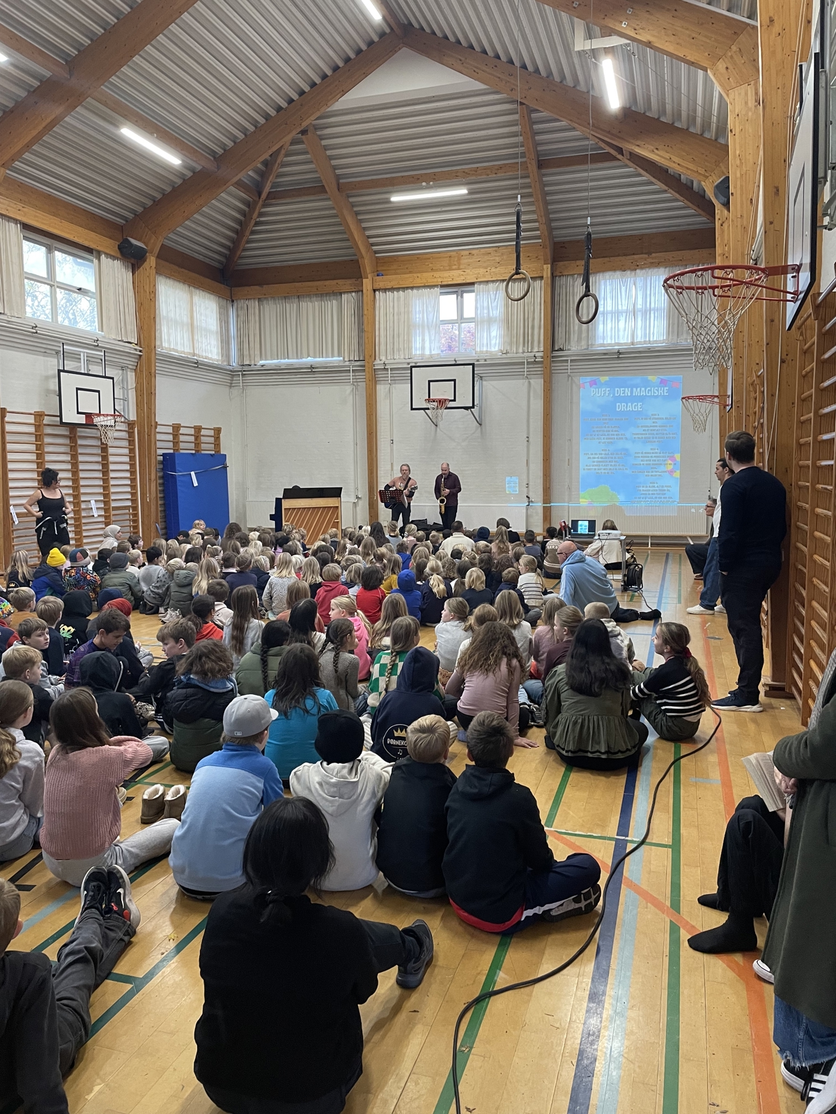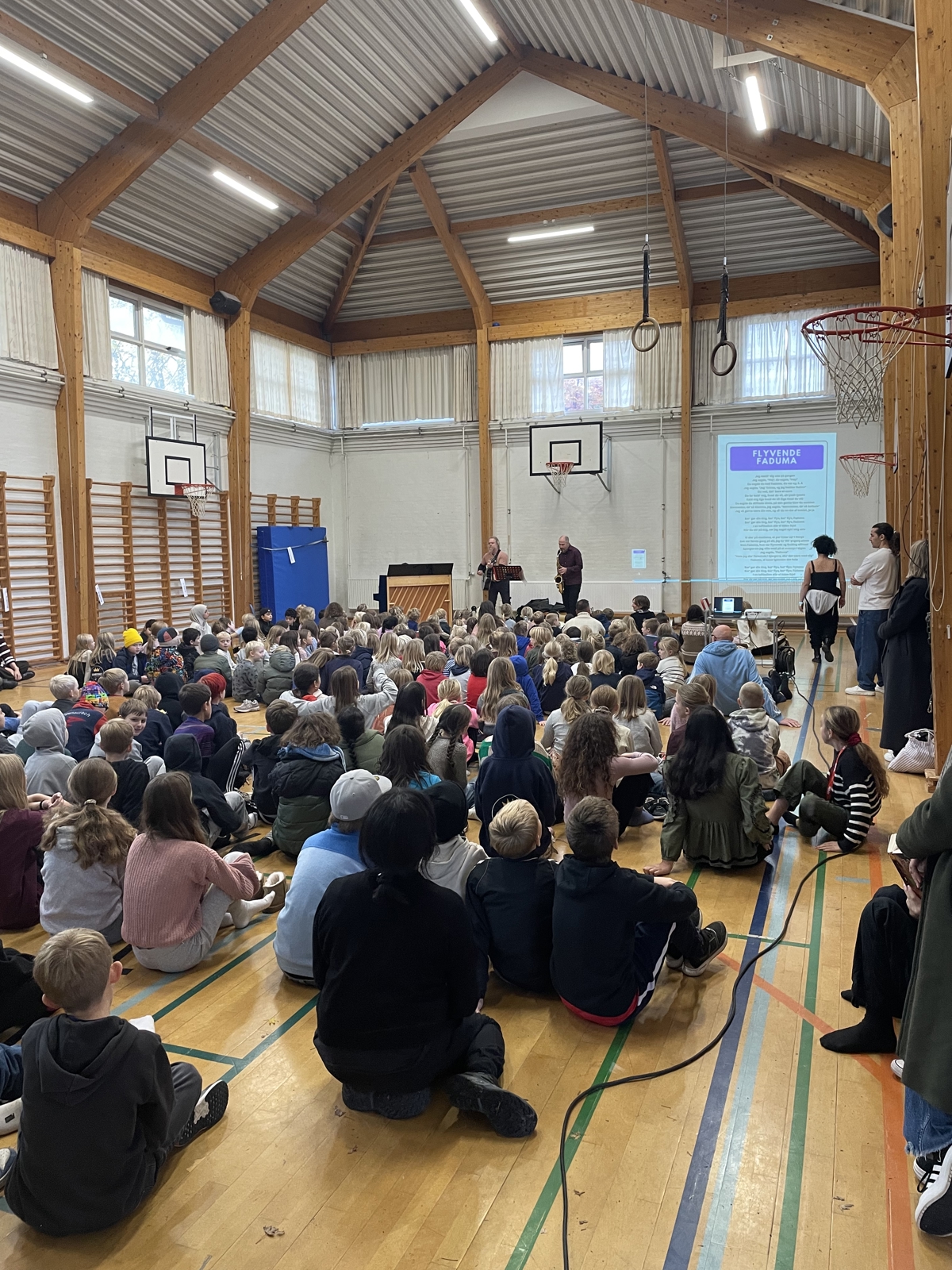 Hver anden onsdag starter vi morgenen med morgensang med 1. - 9. klasse.
